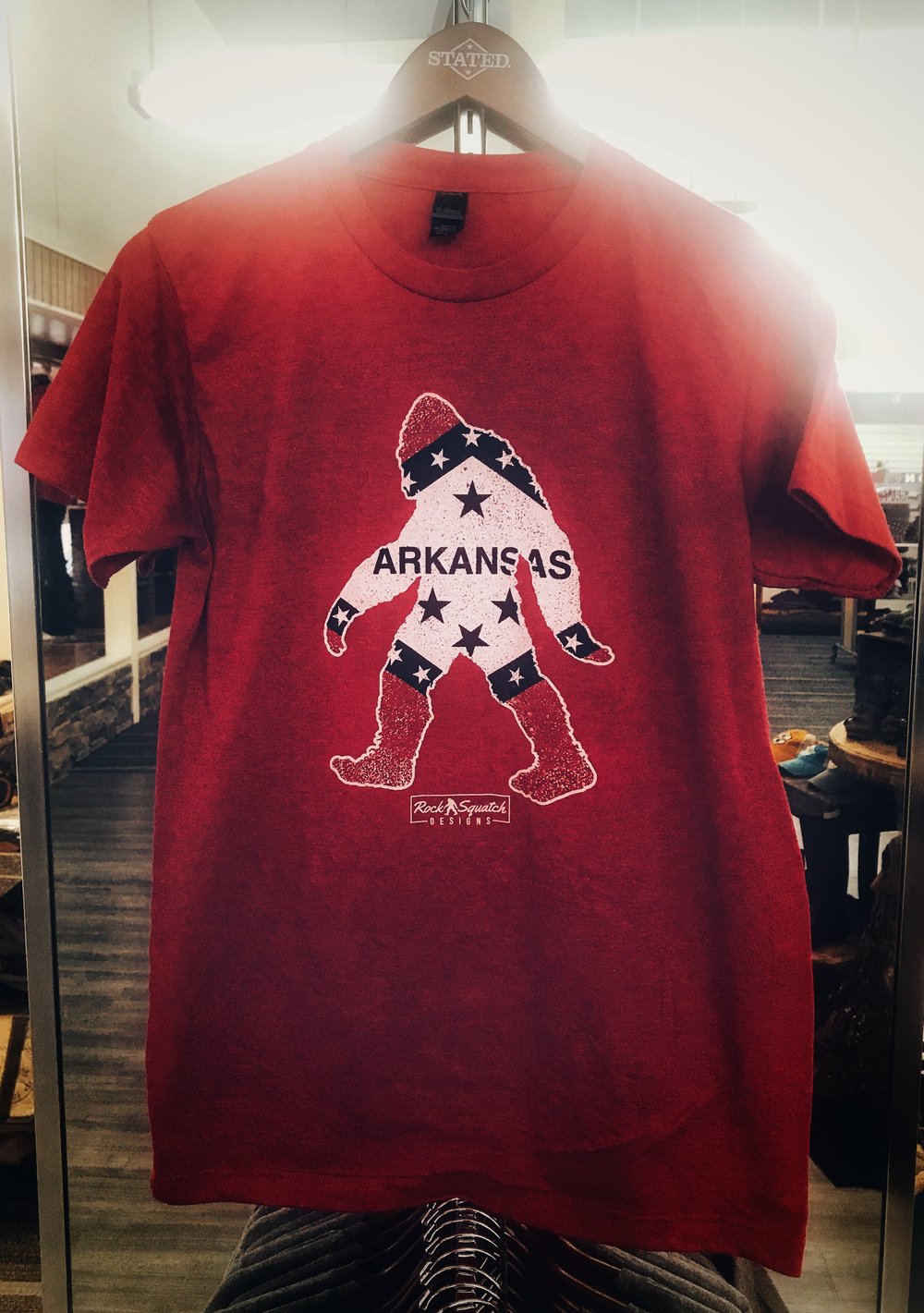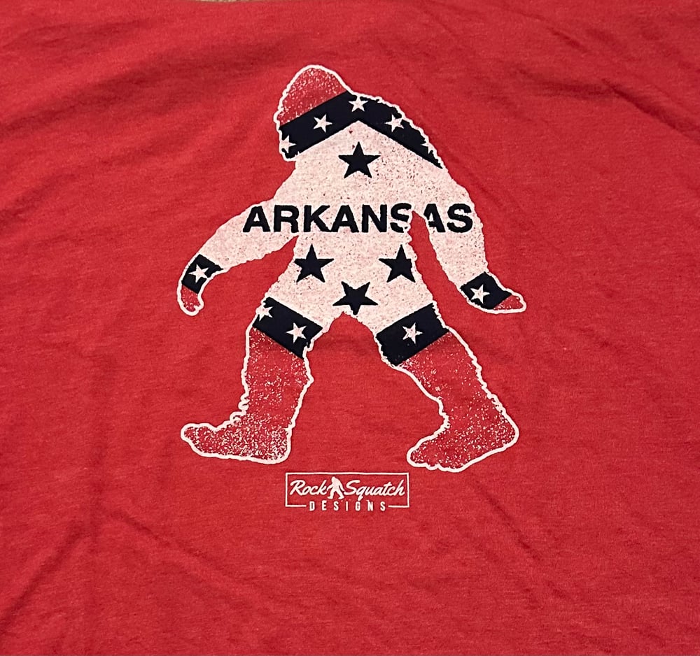 Super comfy Arkansquatch t-shirt. There's no mistaking your alliance with the big mysterious creature and the love for Arkansas.